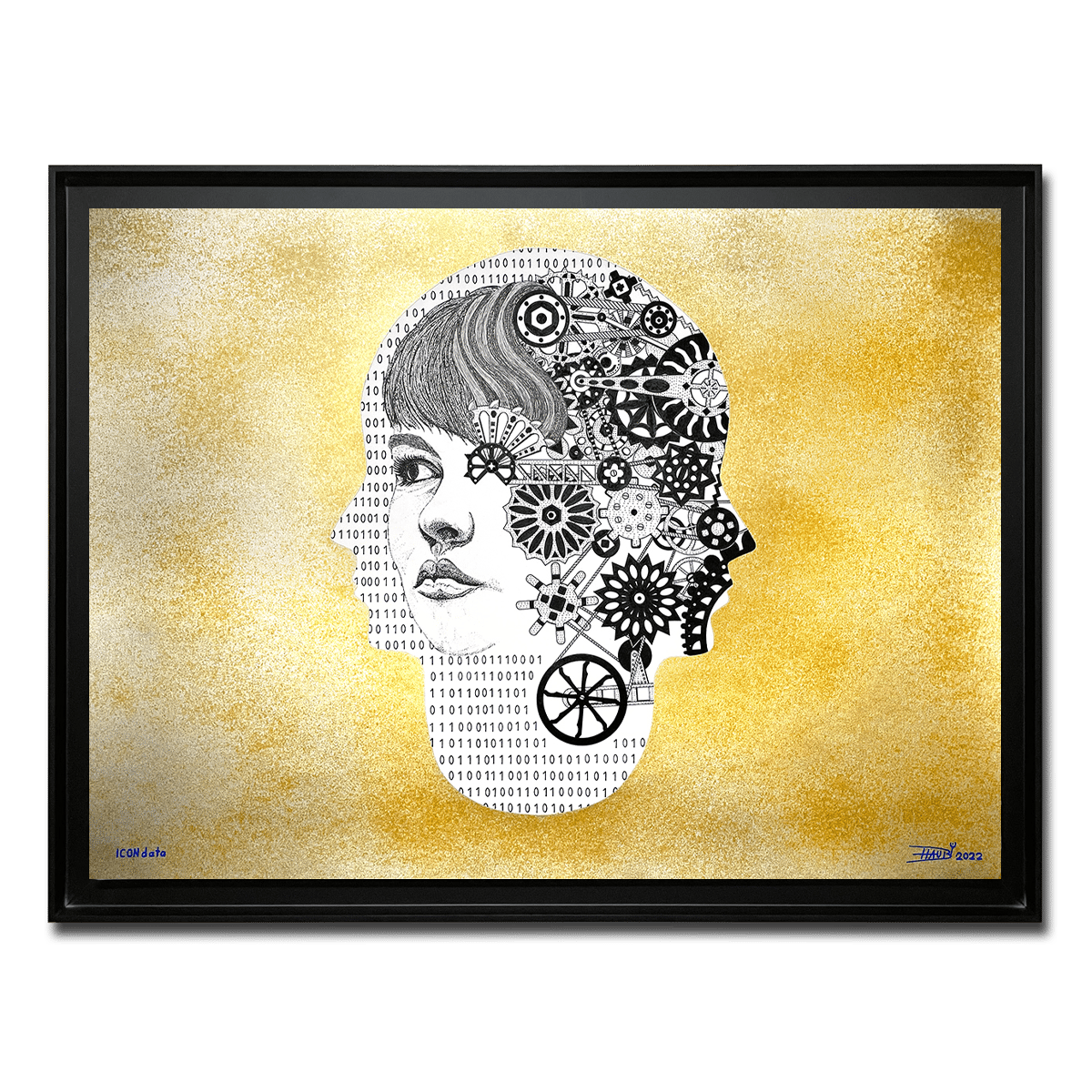 Medium: Handgemaltes Original, Handgeschnittener Stencil, Gold Sprühlack und Tusche auf säurefreiem, pH neutralem 250 g Clairefontaine Papier, 2022
